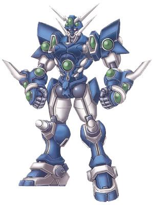 Artifacts: SoulGain. A proposed crystal-powered Armor (mech term?)Guymelf that's in the works. Visually, it may resemble an "animated golem". It'll work similar to its SRW counterpart with extendable elbow blades (like Guyver). The crystals will respond to Axel's movements and strengthen in physical power and speed from his willpower. Projectiles and attack aura are from magical energy.
